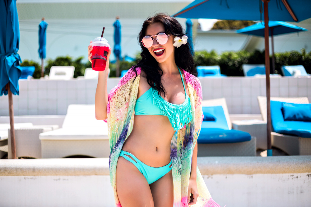 Paletele cromatice ale sezonului sunt împărțite în două direcții majore. Pe de o parte, tonurile naturale – nisipiu, măsliniu, teracotă și crem – inspiră calm și eleganță, fiind preferate în ținutele minimaliste. Pe de altă parte, culorile vibrante precum turcoaz, fucsia sau portocaliu solar dau energie lookului și arată spectaculos pe pielea bronzată. Monocromul rămâne o alegere sigură pentru un efect stilizat și curat.